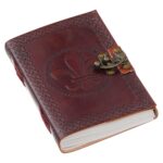 vintage handmade leather journal. Crafted with genuine leather, it radiates authenticity and charm, perfect for those who appreciate classic craftsmanship. The premium antique lock closure adds a touch of elegance and security, ensuring your thoughts and memories are safeguarded within its pages. Inside, you’ll discover 200 White handmade pages, providing ample space for your musings, sketches, and stories to unfold. Whether it’s for journaling, sketching, or planning, this versatile journal is a timeless companion for your creative endeavors. Treat yourself or a loved one to this exquisite piece, a celebration of tradition and creativity